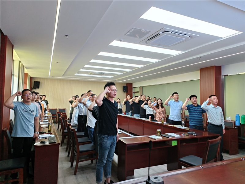 會(huì)上,全體黨員在莊嚴(yán)的黨旗下重溫入黨誓詞,“我志愿加入中國共產(chǎn)黨,擁護(hù)黨的綱領(lǐng)……”鏗鏘的誓詞,回蕩在會(huì)議室的每個(gè)角落,銘刻在每一個(gè)人的心頭。重溫入黨誓詞后,集團(tuán)公司黨支部副書記徐蕾同志為上半年過“政治生日”的黨員發(fā)放政治生日賀卡,黨員們也紛紛為過“政治生日”的黨員送上祝福。