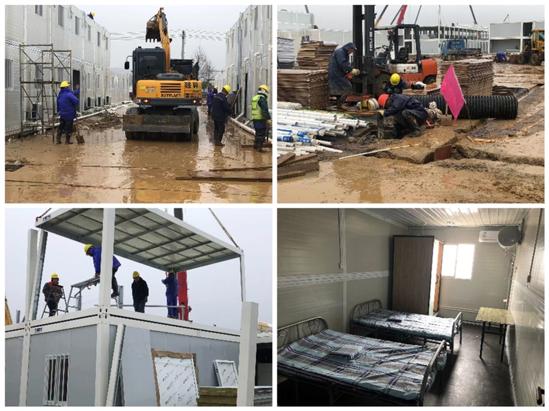 截至2月11日,隔離點(diǎn)項(xiàng)目準(zhǔn)備區(qū)折疊房安裝完成,折疊房室內(nèi)家具、空調(diào)、熱水器、淋浴房、水電正在有序安裝中;隔離區(qū)板房室外電力電纜井砌筑、緩沖區(qū)板房已安裝完成;污水處理設(shè)備正在安裝中,室外走道支模和路燈線路在準(zhǔn)備中。